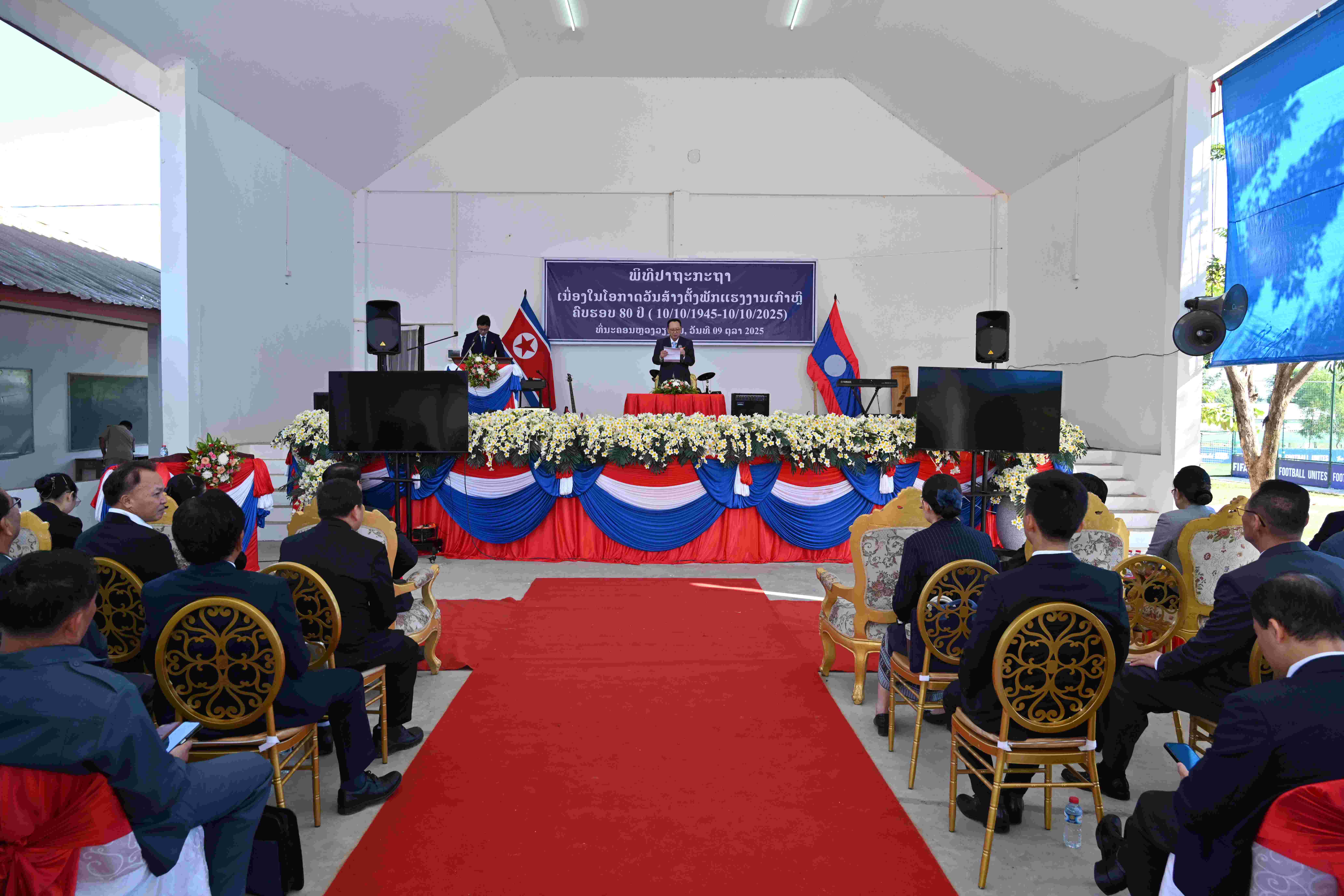 ເຜີຍແຜ່ໂດຍ: moderator ເວລາ: 10/10/2025 11:01:53 ຈຳນວນຢ້ຽມຊົມ 41 ຄັ້ງ ໃນຕອນເຊົ້າວັນທີ 09 ຕຸລາ 2025, ສະມາຄົມມິດຕະພາບລາວ - ສປປ ເກົາຫຼີ, ນະຄອນຫຼວງວຽງຈັນ, ໂຮງຮຽນມັດທະຍົມສົມບູນມິດຕະພາບ ລາວ - ສປປ ເກົາຫຼີ ຮ່ວມກັບ ສະຖານເອກອັກຄະລັດຖະທູດ ແຫ່ງ ສປປ ເກົາຫຼີ ປະຈໍາ ສປປ ລາວ ໄດ້ຈັດພິທີປະກາດຊື່ ໂຮງຮຽນມັດທະຍົມສົມບູນມິດຕະພາບ ລາວ - ສປປ ເກົາຫຼີ ແລະ ປາຖະກະຖາ ວັນສ້າງຕັ້ງພັກແຮງງານເກົາຫຼີ ຄົບຮອບ 80 ປີ (10/10/1945-10/10/2025) ທີ່ ບ້ານນາຄວາຍໃຕ້, ເມືອງໄຊເສດຖາ, ນະຄອນຫຼວງວຽງຈັນ.