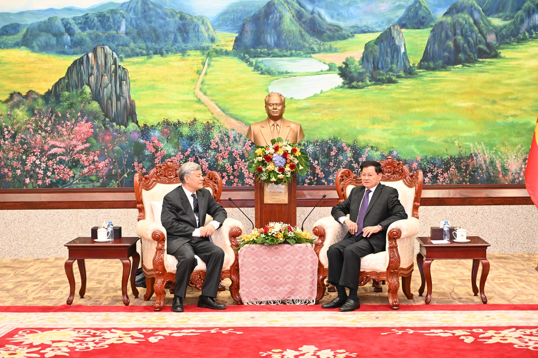 ໃນໄລຍະຢ້ຽມຢາມຄັ້ງນີ້, ຄະນະໄດ້ເຂົ້າຢ້ຽມຂໍ່ານັບ ສະຫາຍ ທອງລຸນ ສີສຸລິດ, ເລຂາທິການໃຫຍ່, ປະທານປະເທດ ແຫ່ງ ສປປ ລາວ ຢູ່ ຫ້ອງວ່າການສູນກາງພັກ ໃນຕອນເຊົ້າຂອງວັນທີ 24 ທັນວາ 2025, ສະຫາຍ ທອງລຸນ ສີສຸລິດ ໄດ້ສະແດງຄວາມຊົມເຊີຍ ຕໍ່ການມາເຄື່ອນໄຫວຢ້ຽມຢາມ ແລະ ປາຖະກະຖາ ຢູ່ ສປປ ລາວ ຂອງຄະນະໃນຄັ້ງນີ້, ຕີລາຄາສູງຕໍ່ການພົວພັນຮ່ວມມື ລະຫວ່າງ ສອງພັກ, ສອງລັດ ແລະ ປະຊາຊົນສອງຊາດ ລາວ-ຈີນ, ໂດຍສະເພາະແມ່ນ ການຈັດຕັ້ງປະຕິບັດ ແຜນແມ່ບົດ ວ່າດ້ວຍການສ້າງຄູ່ຮ່ວມຊາຕາກໍາ ລາວ-ຈີນ ກໍຄື ບັນດາແຜນການຮ່ວມມື ລະຫວ່າງ ສອງພັກ ປະຈໍາປີ 2025 ແລະ ຍິນດີ ຊຸກຍູ້ໃຫ້ຂະແໜງການທີ່ກ່ຽວຂ້ອງ ສືບຕໍ່ຮ່ວມກັບຝ່າຍຈີນ ຈັດຕັ້ງຜັນຂະຫຍາຍຄວາມຮັບຮູ້ທີ່ເປັນເອກະພາບ ລະຫວ່າງ ການນຳສູງສຸດຂອງສອງພັກ, ສອງລັດ ລາວ-ຈີນ; ສືບຕໍ່ຮັກສາການໄປມາຫາສູ່ກັນຢ່າງເປັນປົກກະຕິ, ແລກປ່ຽນບົດຮຽນໃນການຄຸ້ມຄອງພັກ-ບໍລິຫານປະເທດ, ການກໍ່ສ້າງພັກ-ພະນັກງານ ແລະ ການຊຸກຍູ້ເພີ່ມທະວີແລກປ່ຽນດ້ານວັດທະນະທຳ-ສັງຄົມ ແລະ ການໄປມາຫາສູ່ກັນລະຫວ່າງປະຊາຊົນສອງຊາດ ລາວ-ຈີນ; ຕີລາຄາສູງ ຕໍ່ ການປາຖະກະຖາ ຂອງ ສະຫາຍ ເຊ້ຍ ຊູນທາວ, ເຊິ່ງເນື້ອໃນຈິດໃຈ ຂອງ ກອງປະຊຸມຄົບຄະນະ ເທື່ອທີ 4 ສະໄໝທີ XX ຂອງພັກກອມມູນິດຈີນ ກໍຄື ບົດຮຽນຂອງພັກ-ລັດຈີນ ໃນການຈັດຕັ້ງປະຕິບັດ ແຜນພັດທະນາເສດຖະກິດ-ສັງຄົມແຫ່ງຊາດ ຖືເປັນບົດຮຽນອັນລໍ້າຄ່າ ຕໍ່ ການວາງແຜນ ແລະ ຈັດຕັ້ງປະຕິບັດ ແຜນພັດທະນາເສດຖະກິດ-ສັງຄົມແຫ່ງຊາດ ຂອງລາວ, ຈະເປັນໂອກາດດີໃຫ້ຝ່າຍລາວ ກໍາໄດ້ເນື້ອໃນສໍາຄັນຂອງກອງປະຊຸມດັ່ງກ່າວ ແລະ ນໍາມາໝູນໃຊ້ເຂົ້າໃນວຽກງານຕົວຈິງ.