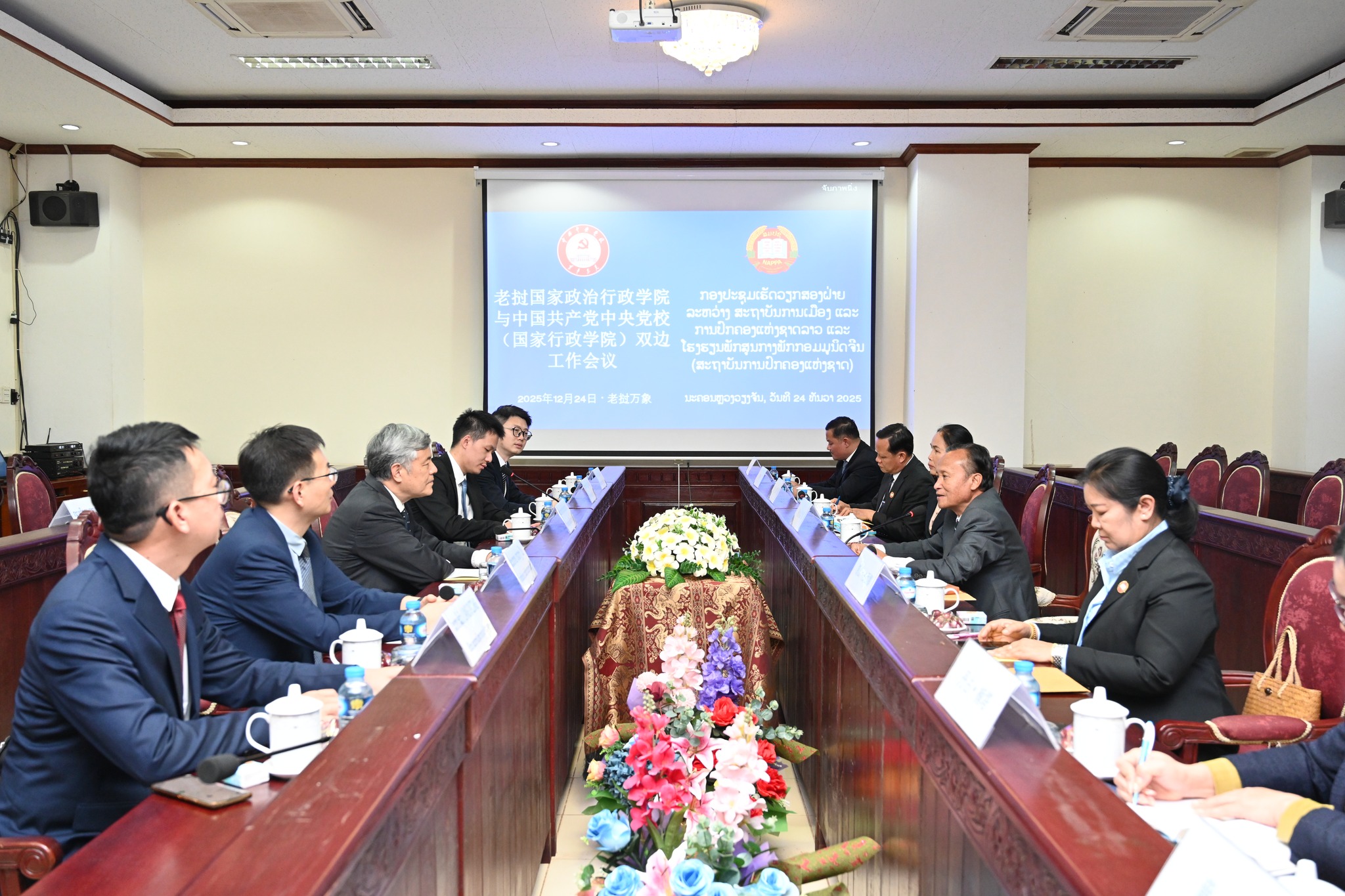 ເຜີຍແຜ່ໂດຍ: moderator ເວລາ: 25/12/2025 08:38:01 ຈຳນວນຢ້ຽມຊົມ 77 ຄັ້ງ ໃນລະຫວ່າງວັນທີ 23-26 ທັນວາ 2025, ຄະນະຜູ້ແທນພັກກອມມູນິດຈີນ ນໍາໂດຍ ສະຫາຍ ເຊ້ຍ ຊູນທາວ, ກໍາມະການສູນກາງພັກ, ຮອງຫົວໜ້າ, ຜູ້ປະຈໍາການ ໂຮງຮຽນພັກ ຂອງ ສູນກາງພັກກອມມູນິດຈີນ (ສະຖາບັນການປົກຄອງແຫ່ງຊາດ) ໄດ້ເດີນທາງມາຢ້ຽມຢາມ ສປປ ລາວ ຕາມແຜນການຮ່ວມມື ລະຫວ່າງ ສອງພັກ ລາວ-ຈີນ ປະຈຳປີ 2025 ເພື່ອຊຸກຍູ້ການພົວພັນຮ່ວມມື ແບບຄູ່ຮ່ວມຍຸດທະສາດຮອບດ້ານ ໝັ້ນຄົງ ຍາວນານ ຕາມທິດ 4 ດີ ແລະ ການສ້າງຄູ່ຮ່ວມຊາຕາກໍາ ລາວ-ຈີນ ໃຫ້ສືບຕໍ່ກ້າວສູ່ລວງເລິກ ແລະ ເຜີຍແຜ່ ຜົນສໍາເລັດກອງປະຊຸມຄົບຄະນະ ຄັ້ງທີ 4 ສະໄໝທີ XX ຂອງພັກກອມມູນິິດຈີນ ທີ່ໄດ້ດໍາເນີນໃນເດືອນຕຸລາ ຜ່ານມາ.