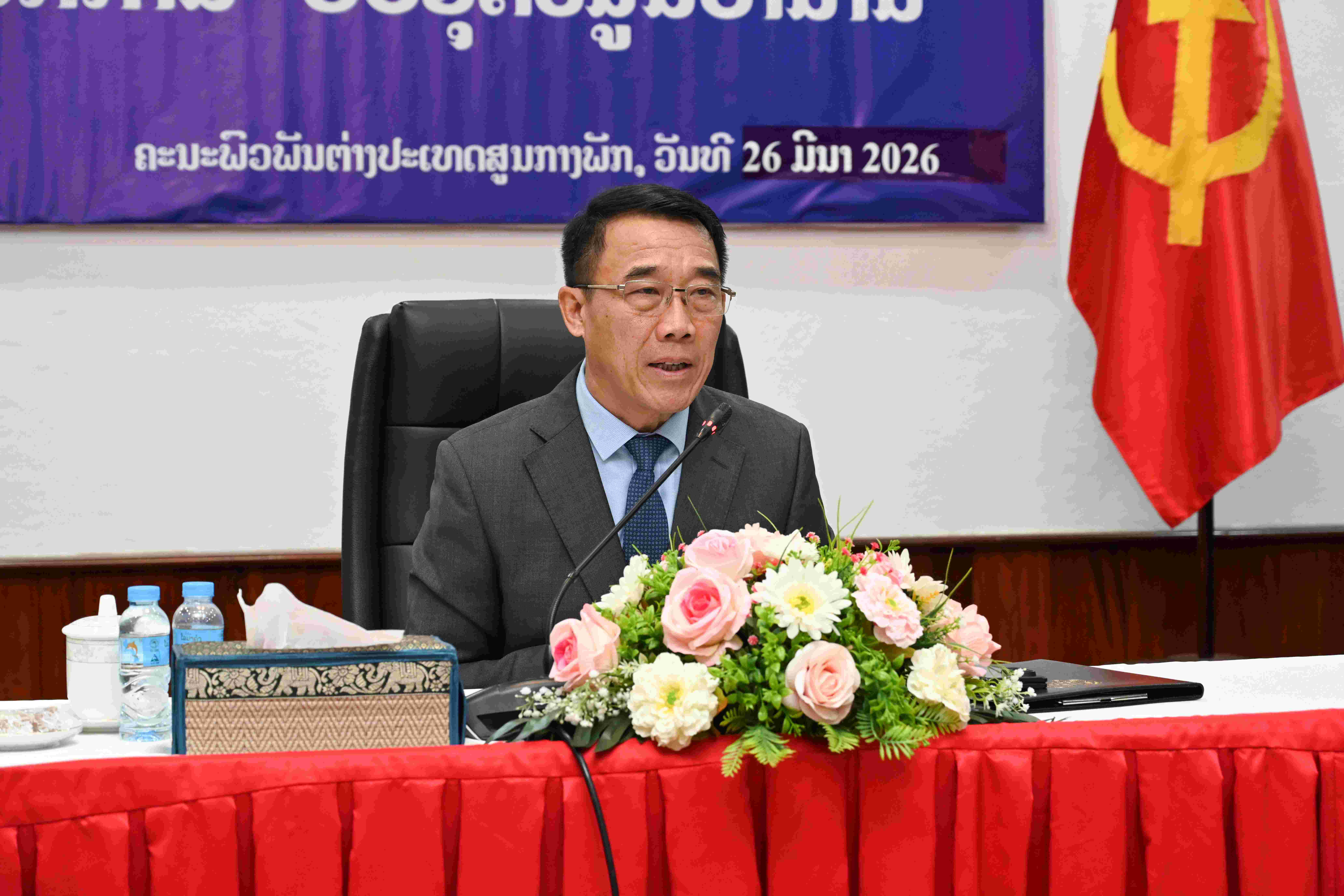 ເຜີຍແຜ່ໂດຍ: moderator ເວລາ: 26/03/2026 14:46:21 ຈຳນວນຢ້ຽມຊົມ 33 ຄັ້ງ ໃນວັນທີ 26 ມີນາ 2026, ທີ່ ຄະນະພົວພັນຕ່າງປະເທດສູນກາງພັກ (ຄຕພ) ໄດ້ຈັດພິທີປະກາດພະນັກງານຂັ້ນສູນກາງຄຸ້ມຄອງ ອອກພັກການ-ຮັບອຸດໜູນບຳນານ ໂດຍການໃຫ້ກຽດເປັນປະທານ ຂອງ ສະຫາຍ ບຸນເຫຼືອ ພັນດານຸວົງ, ກຳມະການສູນກາງພັກ, ເລຂາຄນະບໍລິຫານງານພັກ, ຫົວໜ້າຄະນະພົວພັນ ຕ່າງປະເທດສູນກາງພັກ, ມີຄະນະພັກ-ຄະນະນຳ, ຄະນະກົມ ຕະຫຼອດຮອດພະນັກງານທົ່ວ ຄຕພ ເຂົ້າຮ່ວມຢ່າງພ້ອມພຽງ.