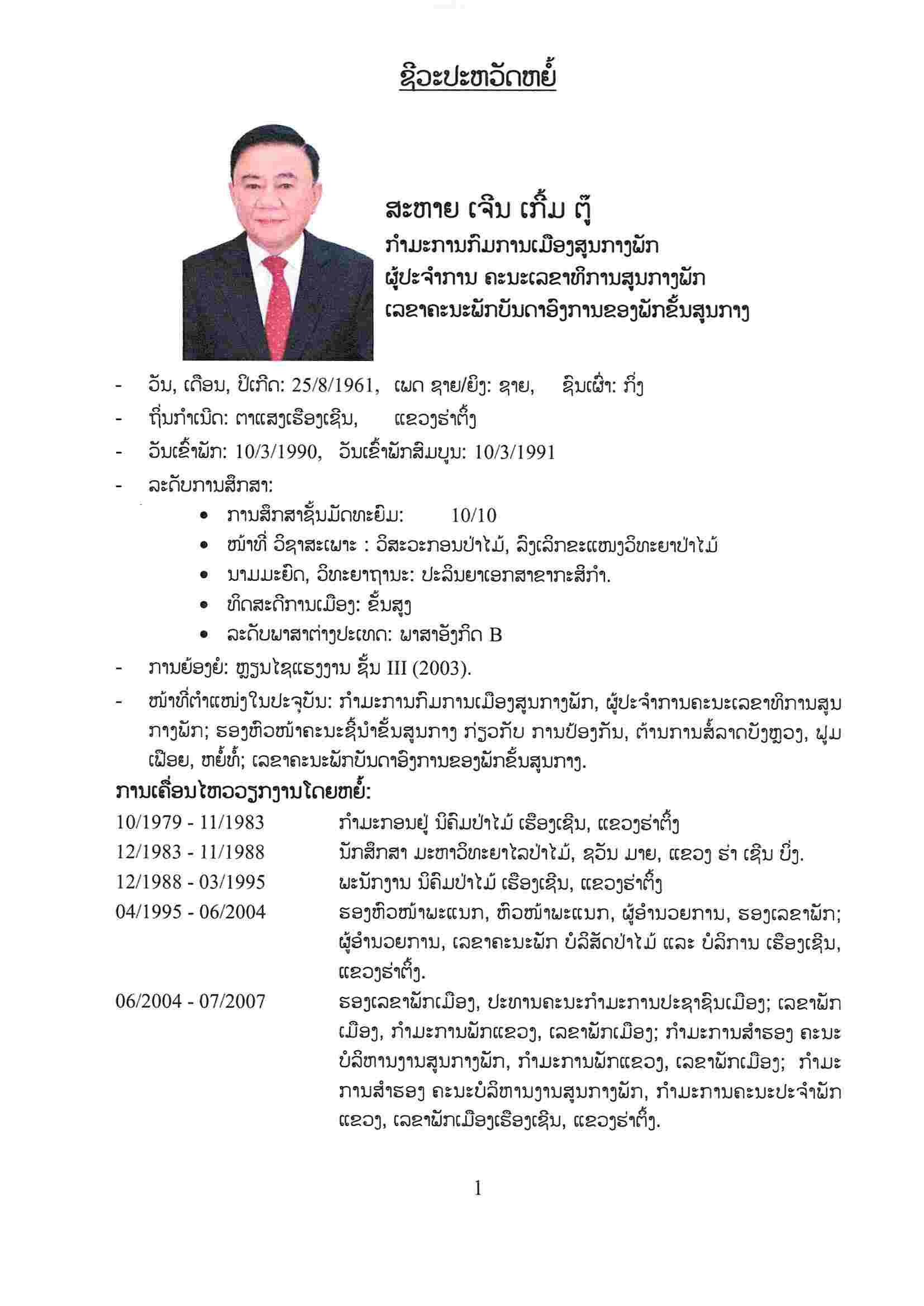 ຊີວະປະຫວັດ ສະຫາຍ ເຈີນ ເກີ້ມ ຕູ໊