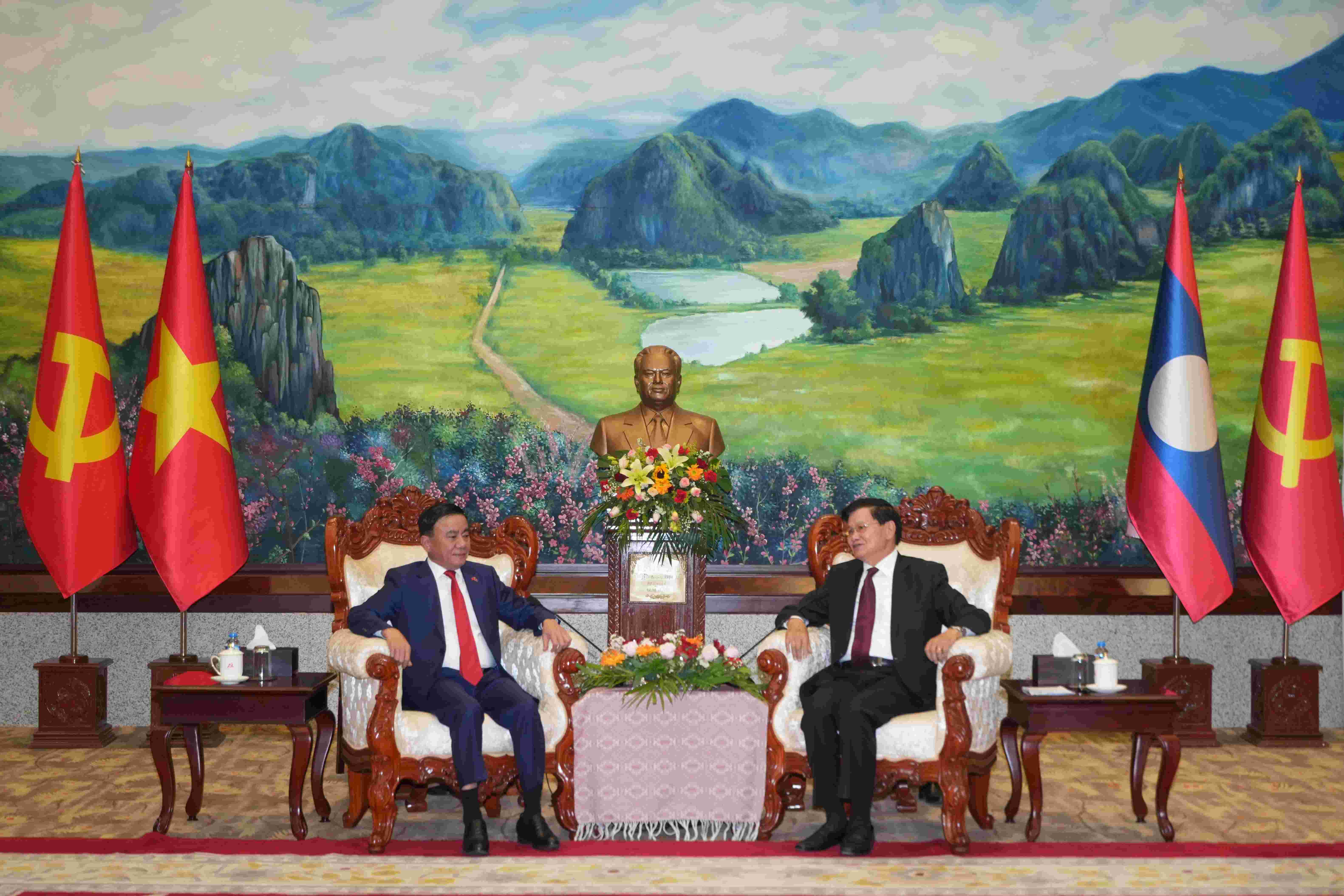 ສະຫາຍ ເຈີນ ເກີ້ມ ຕູ໊ ໄດ້ສະແດງຄວາມຂອບໃຈຕໍ່ການຕ້ອນຮັບອັນອົບອຸ່ນ, ສະໜິດສະໜົມ ແລະ ຊົມເຊີຍຕໍ່ບັນດາຜົນສໍາເລັດທີ່ ພັກ, ລັດ ແລະ ປະຊາຊົນລາວ ຍາດມາໄດ້ ຕະຫຼອດໄລຍະ 40 ປີ ແຫ່ງດໍາເນີນການປ່ຽນແປງ ໃໝ່, ຊົມເຊີຍຜົນສໍາເລັດ ກອງປະຊຸມໃຫຍ່ຜູ້ແທນທົ່ວປະເທດ ແລະ ກອງປະຊຸມສະພາແຫ່ງຊາດລາວ ຄັ້ງປະຖົມມະລຶກ, ເຊິ່ງຮັບຮອງເອົາ ສະຫາຍ ທອງລຸນ ສີສຸລິດ ເປັນປະທານປະເທດ, ຮັບຮອງເອົາປະທານສະພາແຫ່ງຊາດ, ນາຍົກລັດຖະ ມົນຕີ ແລະ ຄະນະລັດຖະບານຊຸດໃໝ່; ພ້ອມທັງແຈ້ງໃຫ້ຊາບ ສະພາບພົ້ນເດັ່ນ ແລະ ບັນດາຜົນສໍາເລັດທີ່ ພັກ, ລັດ ແລະ ປະຊາຊົນຫວຽດນາມ ຍາດມາໄດ້ໃນໄລຍະຜ່ານມາ ໂດຍສະເພາະແມ່ນ ຜົນສໍາເລັດກອງປະຊຸມໃຫຍ່ຜູ້ແທນທົ່ວປະເທດ ຄັ້ງທີ XIV ຂອງພັກ, ການເລືອກຕັ້ງຜູ້ແທນສະພາແຫ່ງຊາດ ຊຸດທີ XVI ແລະ ສະພາປະຊາຊົນຂັ້ນຕ່າງໆ. ສະແດງຄວາມເຫັນດີເປັນເອກະພາບໃນການສືບຕໍ່ ພີ່ມທະວີການຮ່ວມມືຂອງສອງປະເທດ ໂດຍສະເພາະຂົງເຂດການເມືອງ-ການຕ່າງປະເທດ, ປ້ອງກັນຊາດ-ປ້ອງກັນຄວາມສະຫງົບ ແລະ ອື່ນໆ, ຍູ້ແຮງຄວາມເປັນຫຸ້ນສ່ວນຍຸດທະສາດ, ການເຊື່ອຈອດດ້ານຍຸດທະສາດການພັດທະນາປະເທດຂອງ ສອງປະເທດໃຫ້ເຂົ້າສູ່ລວງເລິກ, ຮ່ວມກັນກະກຽມ ຈັດຕັ້ງບັນດາກິດຈະກໍາ ສະເຫຼີມສະຫຼອງສອງວັນປະຫວັດສາດຂອງສອງຊາດໃນປີ 2027 ໃຫ້ເປັນຂະບວນຟົດຟື້ນ, ປະກອບສ່ວນເຂົ້າໃນການເສີມຂະຫຍາຍ ແລະ ເພີ່ມທະວີສາຍພົວພັນມິດຕະພາບອັນຍິ່ງໃຫຍ່, ຄວາມສາມັກຄີພິເສດ, ການຮ່ວມມືຮອບດ້ານ ແລະ ຫຸ້ນສ່ວນຍຸດທະສາດ ຫວຽດນາມ-ລາວ, ລາວ-ຫວຽດນາມ ໃຫ້ນັບມື້ເຂົ້າສູາລວງເລິກ ແລະ ແຕກດອກອອກຜົນຢ່າງບໍ່ຢຸດຢັ້ງ./