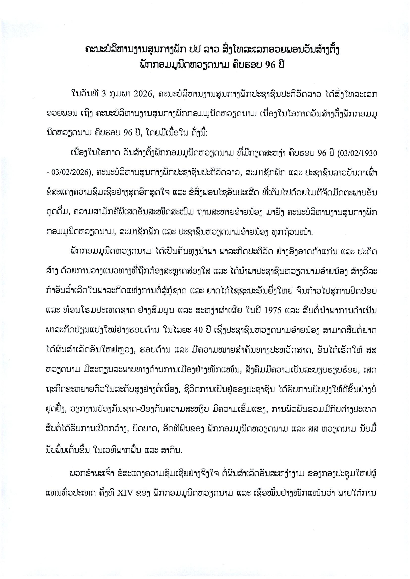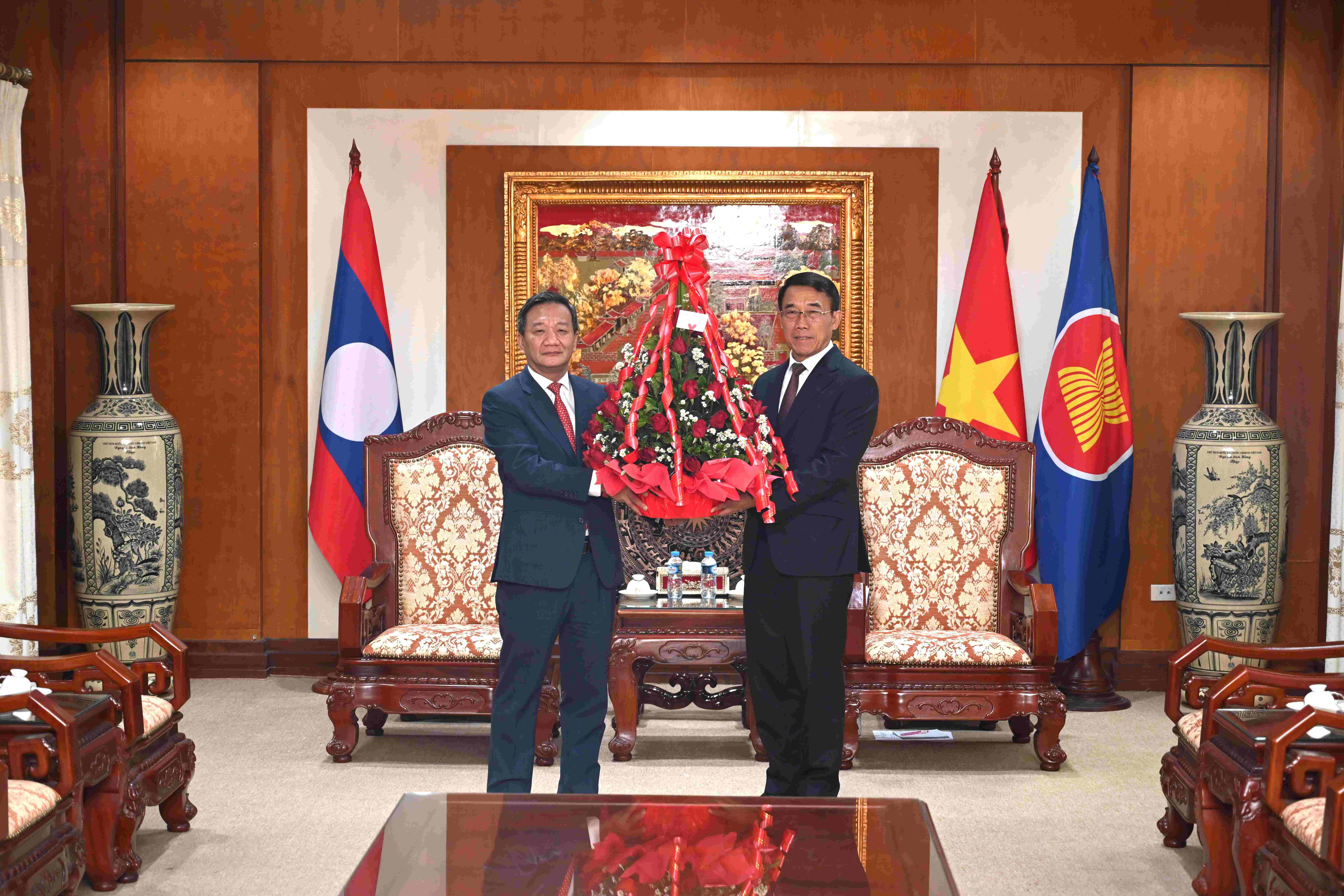 ຫົວໜ້າຄະນະພົວພັນຕ່າງປະເທດສູນກາງພັກ ເຂົ້າອວຍພອນ ສະຖານເອກອັກຄະລັດຖະທູດ ແຫ່ງ ສສ ຫວຽດນາມ ປະຈໍາ ສປປ ລາວ