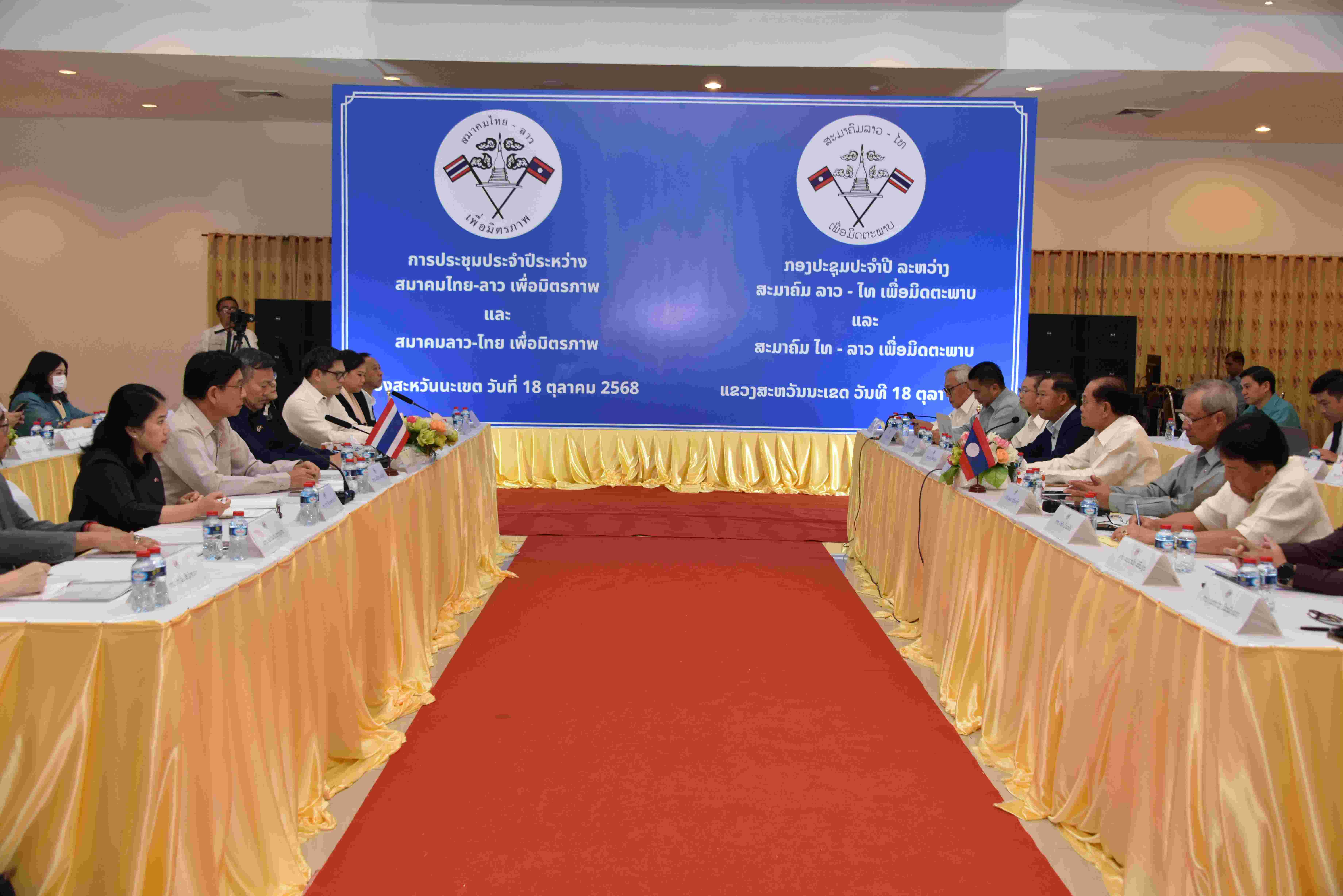 ເຜີຍແຜ່ໂດຍ: moderator ເວລາ: 20/10/2025 15:38:13 ຈຳນວນຢ້ຽມຊົມ 40 ຄັ້ງ ວັນທີ 18 ຕຸລາ 2025, ທີ່ແຂວງສະຫວັນນະເຂດ ສະມາຄົມ ລາວ-ໄທ ເພື່ອມິດຕະພາບ ແລະ ສະມາຄົມ ໄທ-ລາວ ເພື່ອມິດຕະພາບ ໄດ້ຈັດກອງປະຊຸມຮ່ວມປະຈໍາປີ ໂດຍການເປັນປະທານຮ່ວມຂອງທ່ານ ຫຼີີ ບຸນຄໍ້າ, ປະທານສະມາຄົມລາວ-ໄທ ເພື່ອມິດຕະພາບ ແລະ ທ່ານ ກຽດຕິຄຸນ ຊາດປະເສີດ, ປະທານສະມາຄົມ ໄທ-ລາວ ເພື່ອມິດຕະພາບ. ໃຫ້ກຽດເຂົ້າຮ່ວມເປັນແຂກກິຕິມະສັກ ຂອງ ທ່ານ ໂພໄຊ ໄຂຄໍາພິທູນ, ຮອງເຈົ້າແຂວງ ແຂວງສະຫວັນນະເຂດ. ພ້ອມນັ້ນຍັງມີ ຄະນະບໍລິຫານງານສະມາຄົມ ລາວ-ໄທ ແລະ ໄທ-ລາວ ເພື່ອມິດຕະພາບ ແລະ ແຂກທີ່ມີກຽດຈາກພາກສ່ວນກ່ຽວຂ້ອງຂອງສອງຝ່າຍເຂົ້າຮ່ວມ. ກອງປະຊຸມ ໄດ້ທົບທວນຄືນການພົວພັນຮ່ວມມື ແລະ ເຄື່ອນໄຫວສ້າງກິດຈະກໍາຮ່ວມກັນໃນໄລຍະຜ່ານມາ ແລະ ປຶກສາຫາລືແຜນການຮ່ວມມື ແລະ ເຄື່ອນໄຫວກິດຈະກໍາຮ່ວມກັນໃນຕໍ່ໜ້າ ເພື່ອເຮັດໃຫ້ການເຄື່ອນໄຫວຮ່ວມມື ຂອງສອງສະມາຄົມພວກເຮົາ ໃຫ້ນັບມື້ມີບາດກ້າວໃໝ່, ມີປະສິທິພາບ ແລະ ປະສິດທິຜົນ ເພື່ອປະກອບສ່ວນເຂົ້າໃນການເສີມຂະຫຍາຍ ແລະ ພັດທະນາສາຍພົວພັນ ແລະ ການຮ່ວມມື ຖານບ້ານໃຫ້ເຮືອນຄຽງກໍ່ຄືການເປັນຄູ່ຮ່ວມຍຸດທະສາດເພື່ອການຈະເລີນເຕີບໂຕ ແລະ ການພັດທະນາແບບຍືນຍົງ ລະຫວ່າງ ສອງປະເທດ ແລະ ປະຊາຊົນສອງຊາດ ລາວ ແລະ ໄທ. ກອງປະຊຸມ ມີຄວາມພາກພູໃຈ ທີ່ເຫັນວ່າສະມາຄົມລາວ-ໄທ ເພື່ອມິດຕະພາບ ແລະ ສະມາຄົມ ໄທ-ລາວ ເພື່ອມິດຕະພາບ ໄດ້ຮັບການສ້າງຕັ້ງຂຶ້ນໃນ ວັນທີ 29 ມິຖຸນາ 1993 ເຊິ່ງມາຮອດປີນີ້ແມ່ນຄົບຮອບ 32 ປີ, ຕະຫລອດໄລຍະເວລາ 32 ປີ ທີ່ຜ່ານມາ ການຮ່ວມມື ຂອງສອງສະມາຄົມໄດ້ດໍາເນີນໄປດ້ວຍບັນຍາກາດໄມຕີຈິດມິດຕະພາບທີ່ດີ ແລະ ມີການພັດທະນາຢ່າງຕໍ່ເນື່ອງໃນຫຼາຍດ້ານທັງພາກລັດ, ພາກເອກະຊົນ ຫມາຍວ່າໄດ້ເຮັດຫນ້າທີ່ວຽກງານການທູດປະຊາຊົນໄດ້ດີ, ເຊິ່ງເຫັນວ່າ ລັດຖະບານ ແລະ ປະຊາຊົນຂອງທັງສອງປະເທດມີຄວາມເຂົ້າອົກເຂົ້າໃຈກັນດີ, ເຊິ່ງສອງສະມາຄົມໄດ້ຈັດກິດຈະກຳ ຮ່ວມກັນຢ່າງຕໍ່ເນື່ອງ ເຊັ່ນ: ການທອດຖວາຍຜ້າກະຖິນພຣະຣາຊະທານຢູ່ລາວ ຈຳນວນ 24 ຄັ້ງ ແລະ ການທອດຖວາຍ ຜ້າປ່າສາມັກຄີ ຢູ່ໄທ ຈໍານວນ 04 ຄັ້ງ. ພ້ອມນັ້ນ, ໃນກອງປະຊຸມ ຍັງໄດ້ປຶກສາຫາລື, ຄົ້ນຄວ້າປະກອບ ຄໍາຄິດຄໍາເຫັນຕໍ່ການເຄື່ອນໄຫວ ແລະ ຈັດກິດຈະກໍາຮ່ວມກັນ ເພື່ອສົ່ງເສີມການຮ່ວມມືທາງດ້ານການທ່ອງທ່ຽວ, ກະສິກໍາ, ການຝຶກອົບຮົມວິຊາການຂະແໜງຕ່າງໆ, ການຮ່ວມມືພາກທຸລະກິດ, ການແລກປ່ຽນບົດຮຽນລະຫວ່າງບ້ານ-ຊຸມຊົນ, ການສ້າງກິດຈະກຳກິລາຫາລາຍໄດ້ຊ່ວຍເຫຼືອສັງຄົມ ແລະ ອື່ນໆ ເພື່ອເຮັດໃຫ້ ສະມາຄົມມີການເຄື່ອນໄຫວທີ່ຫຼາກຫຼາຍ ແລະ ມີຄວາມພົ້ນເດັ່ນຂຶ້ນ.