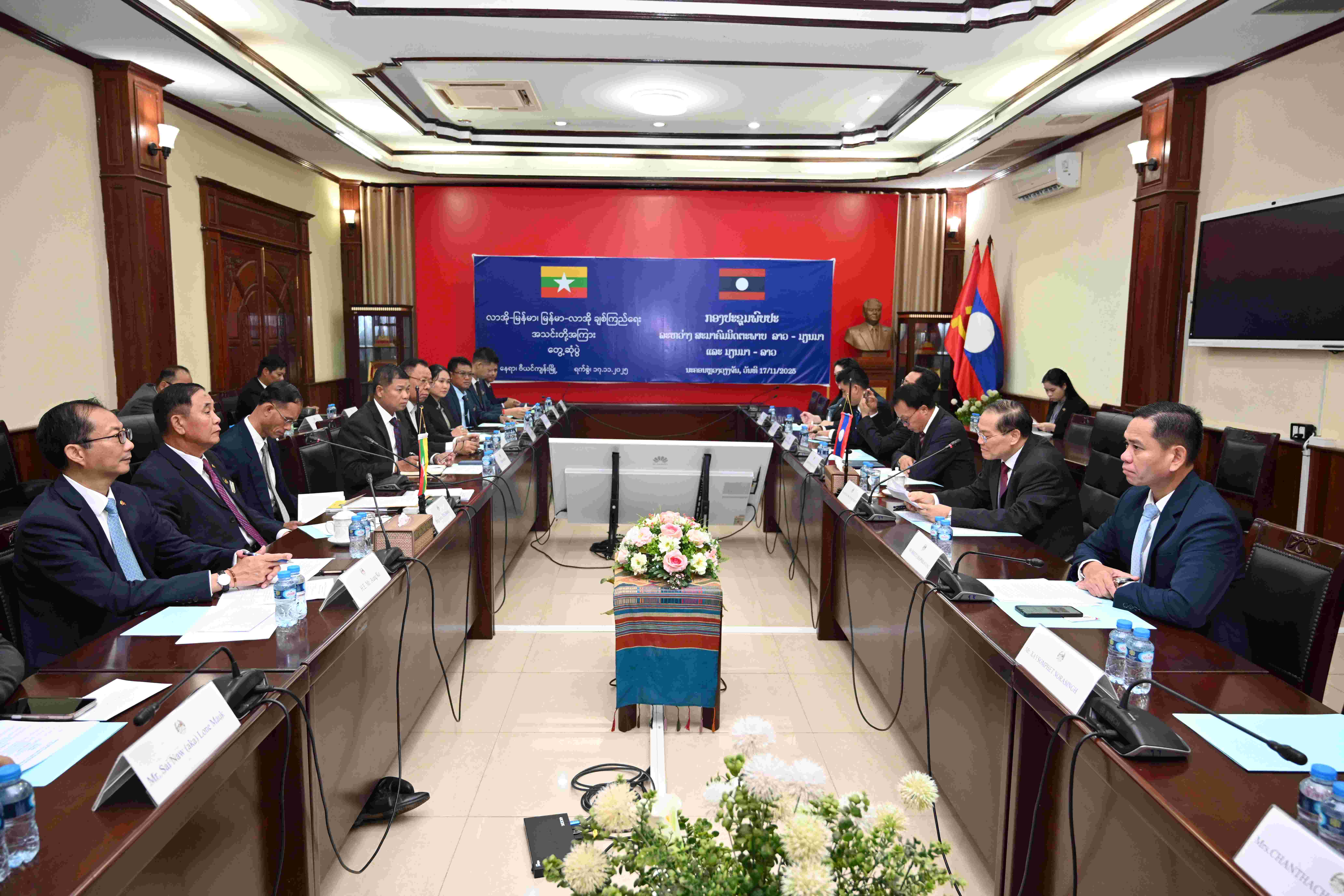 ໃນວັນທີ 17 ພະຈິກ 2025, ສອງສະມາຄົມມິດຕະພາບ ໄດ້ຈັດກອງປະຊຸມພົບປະຄັ້ງທຳອິດ ນັບຕັ້ງແຕ່ສອງສະມາຄົມສ້າງຕັ້ງມາ, ໂດຍການເປັນປະທານຮ່ວມ ຂອງ ທ່ານ ຈັນທະວົງ ແສນອາມາດມົນຕີ, ຮອງປະທານກຳມາທິການການຕ່າງປະເທດ, ສະພາແຫ່ງຊາດ, ປະທານສະມາຄົມ ມິດຕະພາບ ລາວ - ມຽນມາ ແລະ ທ່ານ ພົນຈັດຕະວາ ວິນ ມອງ (Win Maung), ປະທານສະມາຄົມ ມິດຕະພາບ ມຽນມາ - ລາວ ແລະ ເປັນກຽດເຂົ້າຮ່ວມ ຂອງ ທ່ານ ອອງ ໂກ (Aung Ko), ເອກອັກຄະລັດຖະທູດ ວິສາມັນ ຜູ້ມີອໍານາດເຕັມ ແຫ່ງ ສສ. ມຽນມາ ປະຈຳ ສປປ ລາວ. ພ້ອມນີ້ ຍັງມີບັນດາທ່ານຄະນະສະມາຄົມມິດຕະພາບ ລາວ - ມຽນມາ ແລະ ມຽນມາ - ລາວ, ພະນັກງານຈາກພາກສ່ວນທີ່ກ່ຽວຂ້ອງຂອງທັງສອງຝ່າຍ ເຂົ້າຮ່ວມຢ່າງພ້ອມພຽງ.