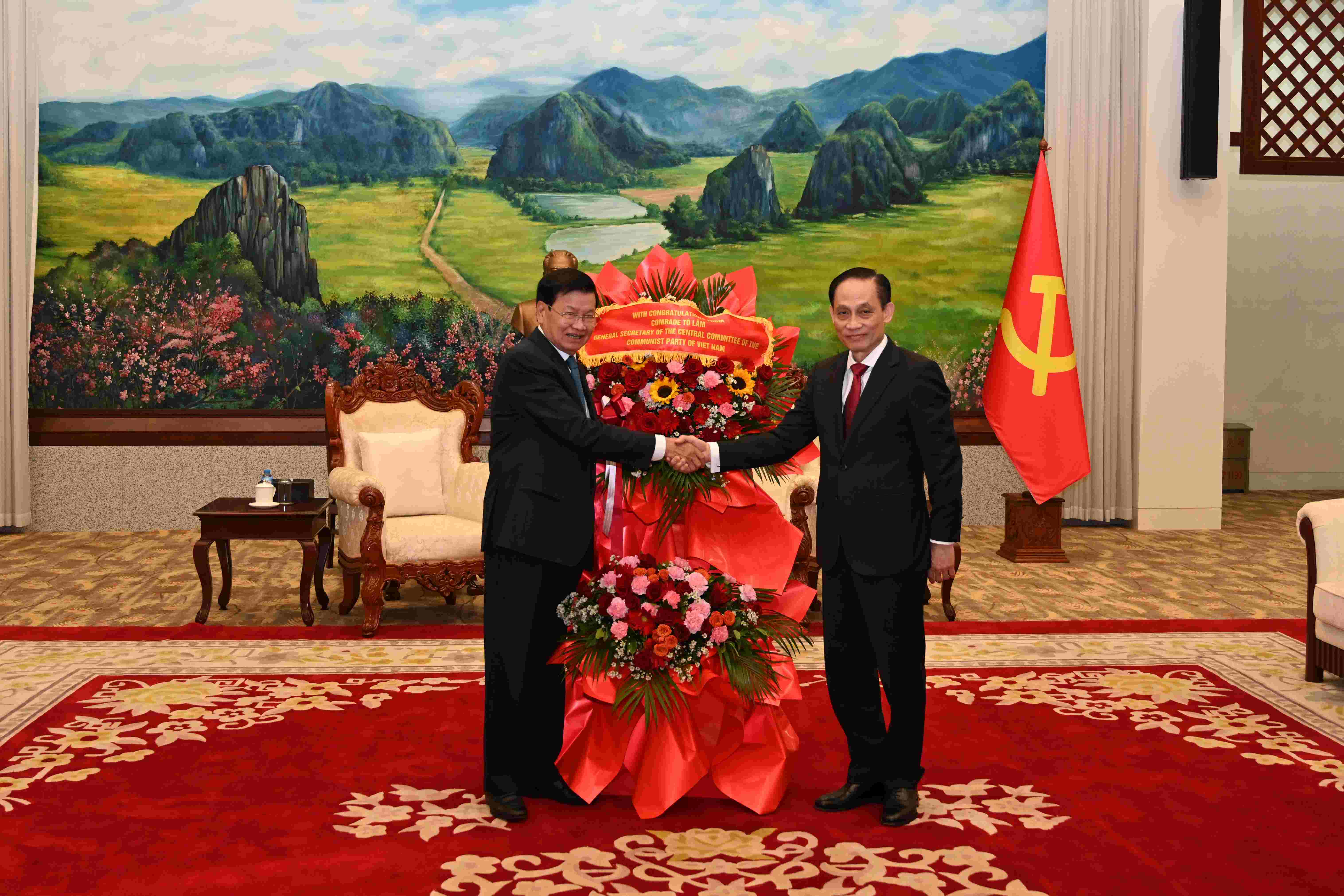 ເລຂາທິການໃຫຍ່ ຄະນະບໍລິຫານງານສູນກາງພັກປະຊາຊົນປະຕິວັດລາວ ຕ້ອນຮັບການເຂົ້າຢ້ຽມຂໍ່ານັບ ແລະ ຊົມເຊີຍຂອງ ຜູ້ຕາງໜ້າພິເສດຂອງ ສູນກາງພັກກອມມູນິດຫວຽດນາມ