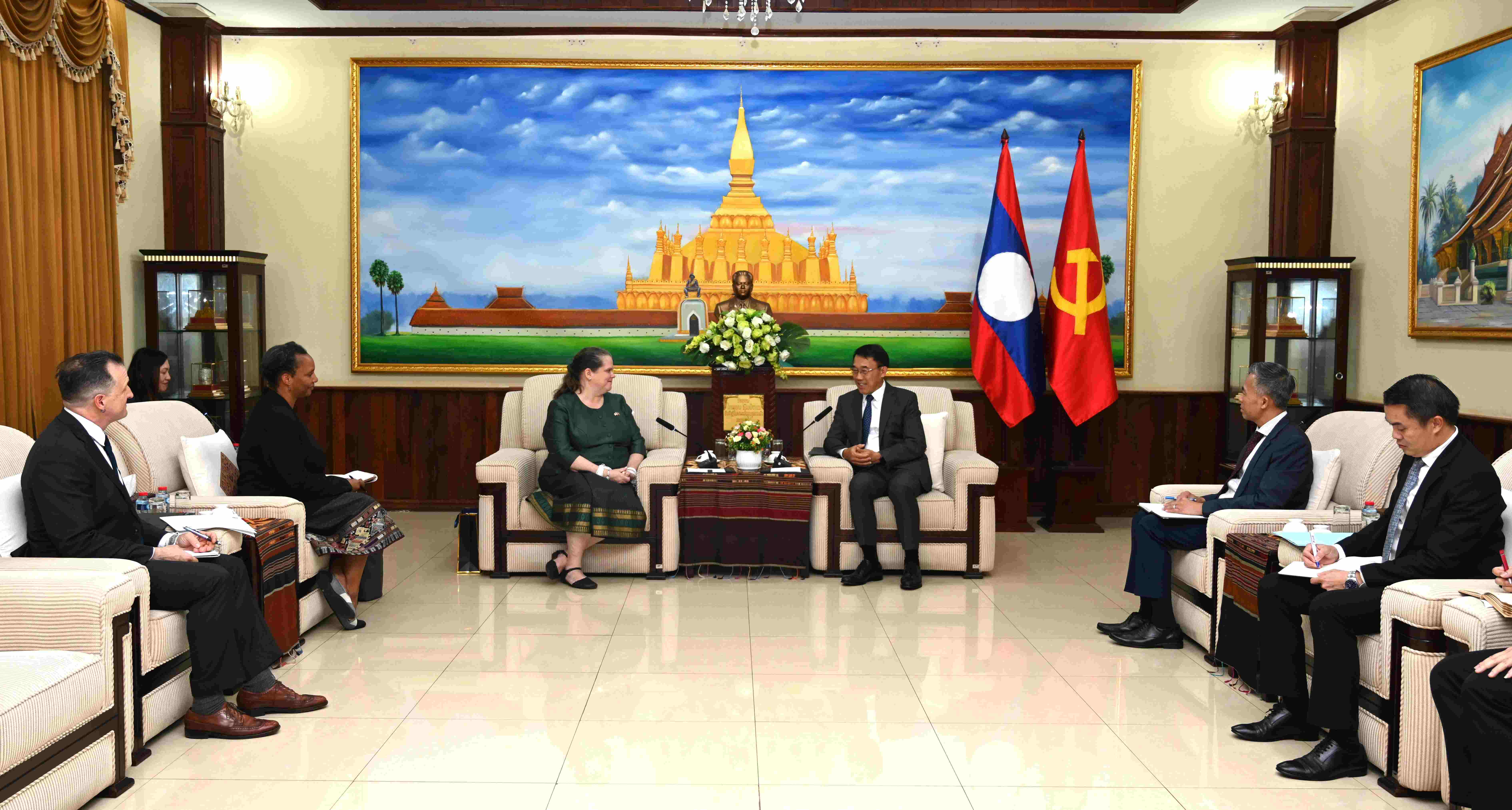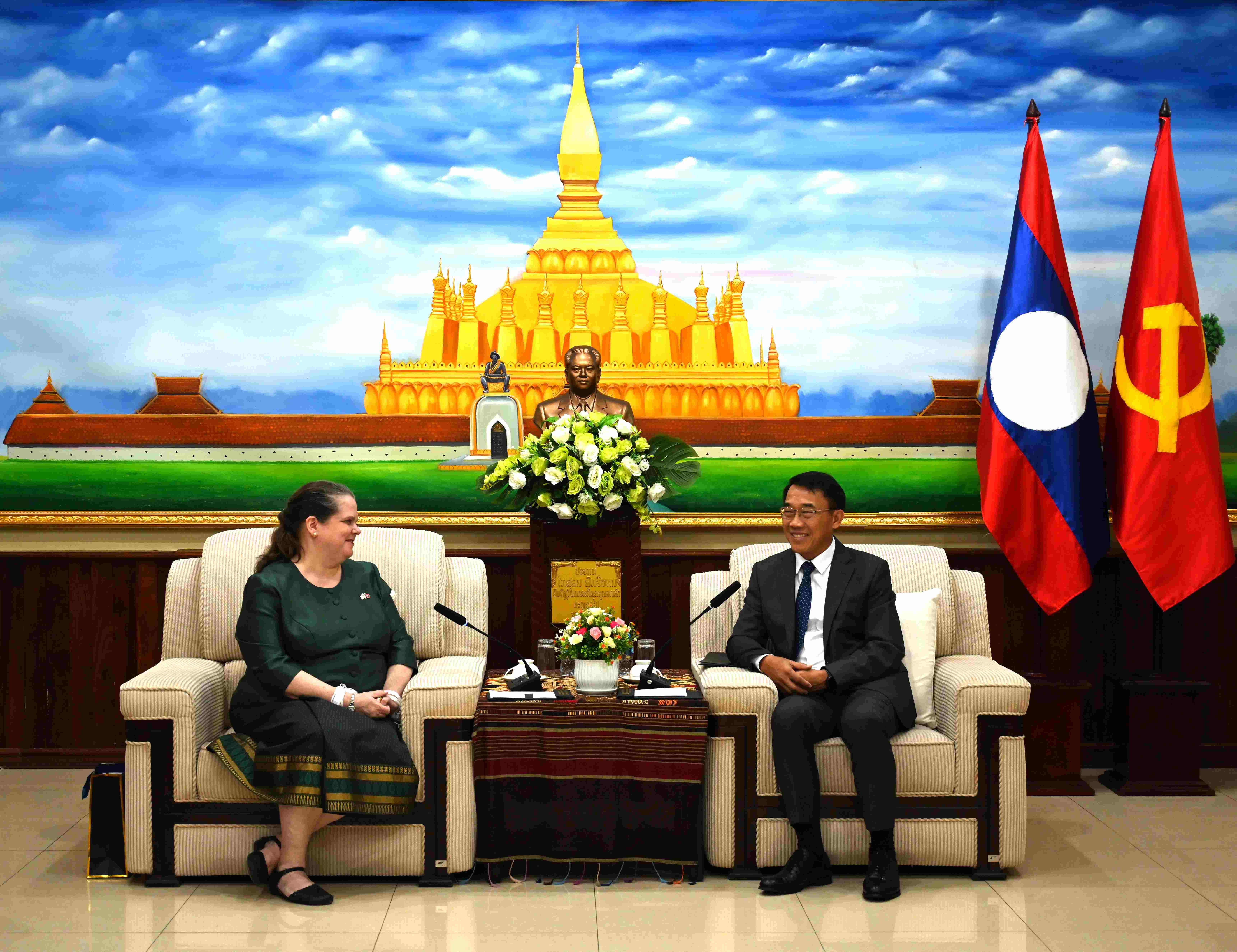 ຫົວໜ້າຄະນະພົວພັນຕ່າງປະເທດສູນກາງພັກ ຕ້ອນຮັບ ເອກອັກຄະລັດຖະທູດ ສ.ອາເມຣິກາ ເຂົ້າຢ້ຽມອໍາລາ