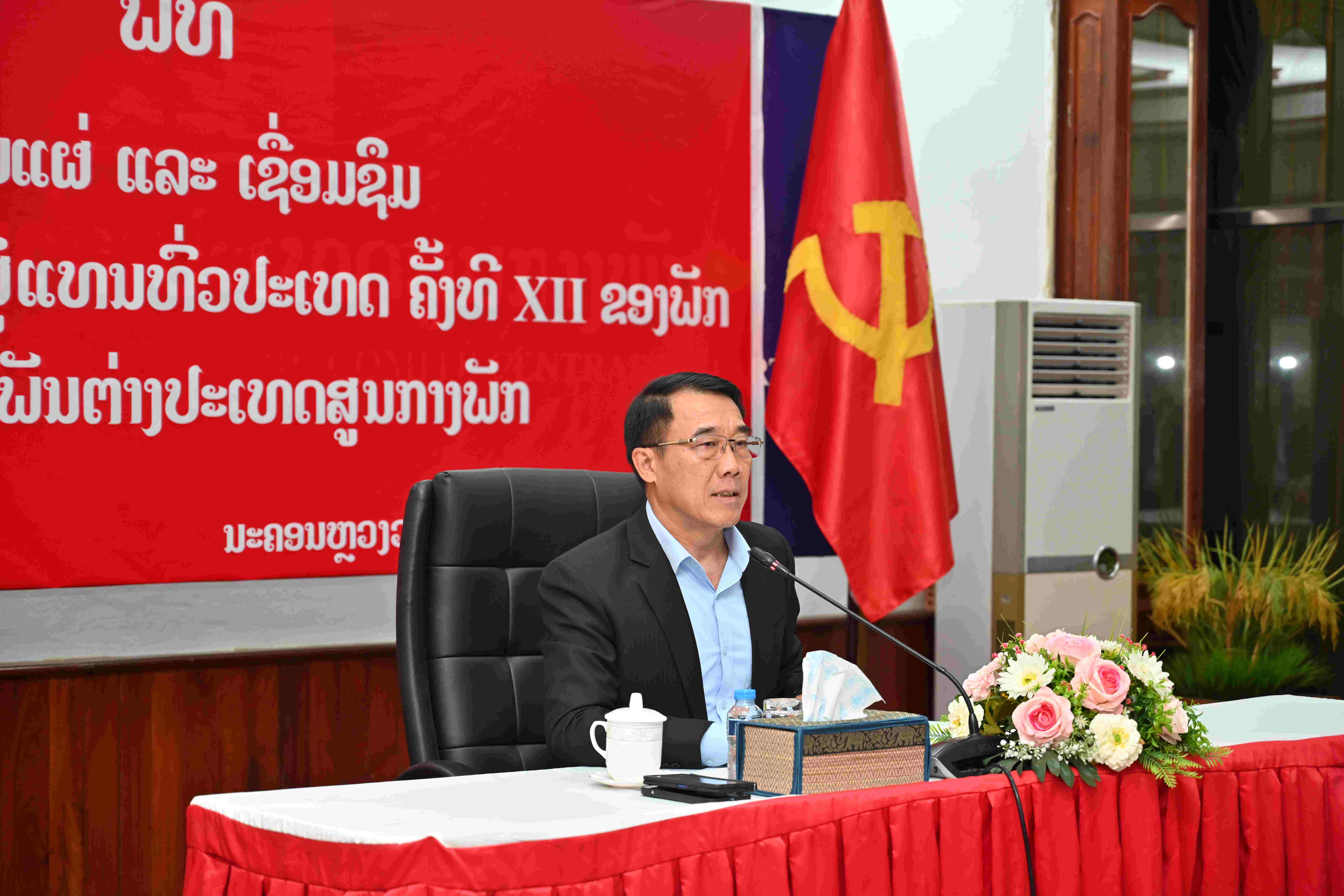 ເຜີຍແຜ່ໂດຍ: moderator ເວລາ: 20/03/2026 13:05:58 ຈຳນວນຢ້ຽມຊົມ 38 ຄັ້ງ ໃນວັນທີ 20 ມີນາ 2026, ທີ່ ຄະນະພົວພັນຕ່າງປະເທດສູນກາງພັກ ໄດ້ຈັດປາຖະກະຖາເຜີຍແຜ່, ເຊື່ອມຊຶມ ມະຕິກອງປະຊຸມໃຫຍ່ຜູ້ແທນທົ່ວປະເທດ ຄັ້ງທີ XII ຂອງພັກ. ໂດຍການໃຫ້ກຽດເປັນປະທານ ແລະ ເຜີຍແຜ່ ຂອງ ສະຫາຍ ບຸນເຫຼືອ ພັນດານຸວົງ, ກໍາມະການສູນກາງພັກ, ເລຂາຄະນະບໍລິຫານງານພັກ, ຫົວໜ້າຄະນະພົວພັນຕ່າງປະເທດສູນກາງພັກ, ມີບັນດາສະຫາຍໃນຄະນະບໍລິຫານງານພັກ, ພະນັກງານອາວຸໂສບຳນານ, ແລະ ພະນັກງານ ຂອງ ຄະນະພົວພັນຕ່າງປະເທດສູນກາງພັກ ເຂົ້າຮ່ວມຢ່າງພ້ອມພຽງ.