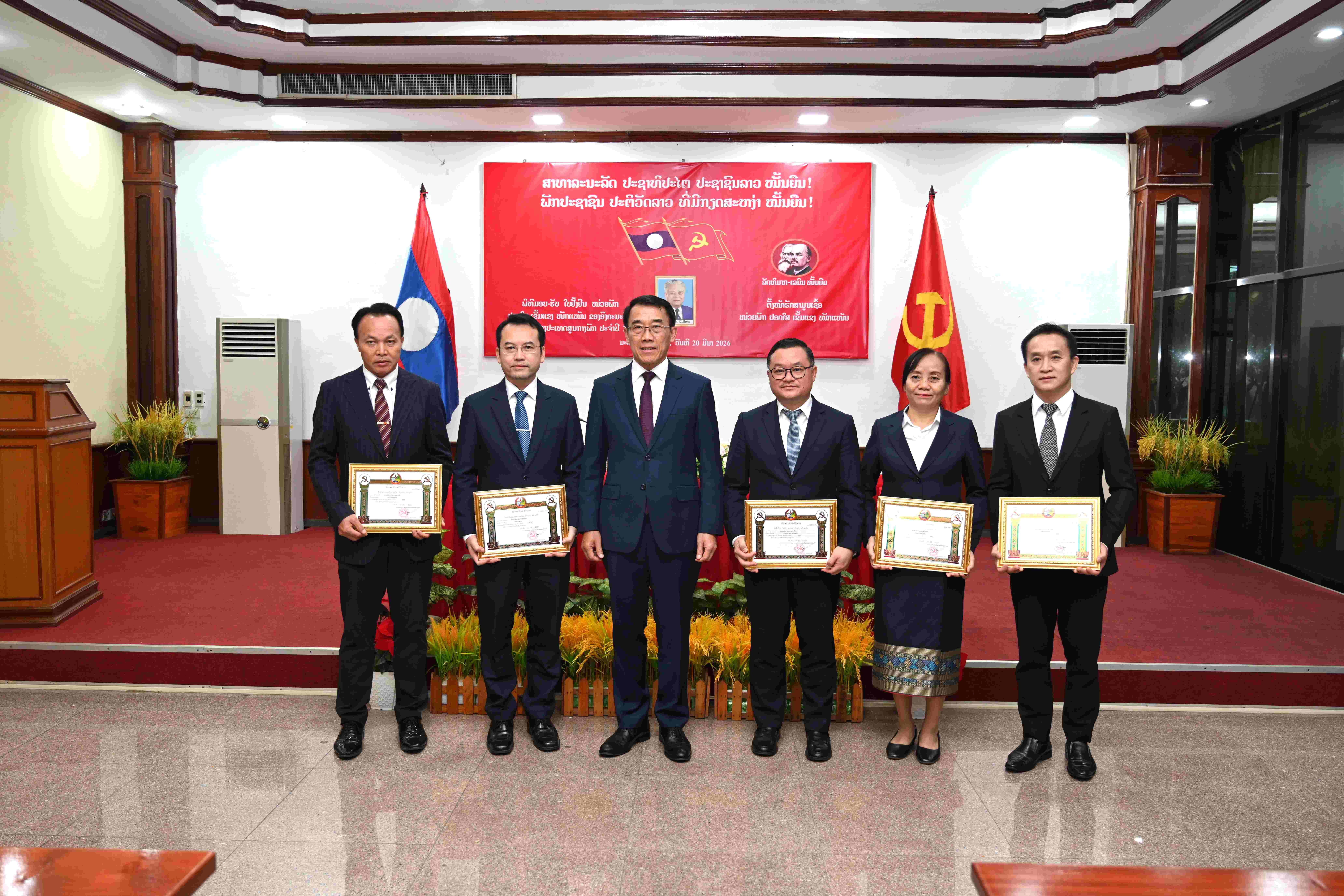 ເຜີຍແຜ່ໂດຍ: moderator ເວລາ: 20/03/2026 16:39:27 ຈຳນວນຢ້ຽມຊົມ 37 ຄັ້ງ ໃນວັນທີ 20 ມີນາ 2026, ທີ່ ຄະນະພົວພັນຕ່າງປະເທດສູນກາງພັກ ໄດ້ຈັດພິທີ ມອບ-ຮັບ ໃບຢັ້ງຢືນໜ່ວຍພັກປອດໃສ, ເຂັ້ມແຂງ, ໜັກແໜ້ນ ໃຫ້ກຽດເປັນປະທານ ໂດຍ ສະຫາຍ ບຸນເຫຼືອ ພັນດານຸວົງ, ກຳມະການສູນກາງພັກ, ເລຂາຄະນະບໍລິຫານງານພັກ, ຫົວໜ້າຄະນະພົວພັນຕ່າງປະເທດສູນກາງພັກ, ມີບັນດາຄະນະບໍລິຫານງານພັກ, ສະມາຊິກພັກທັງໝົດ ພາຍໃນ ຄະນະພົວພັນຕ່າງປະເທດສູນກາງພັກ ເຂົ້າຮ່ວມ 62 ສະຫາຍ, ຍິງ 19 ສະຫາຍ.