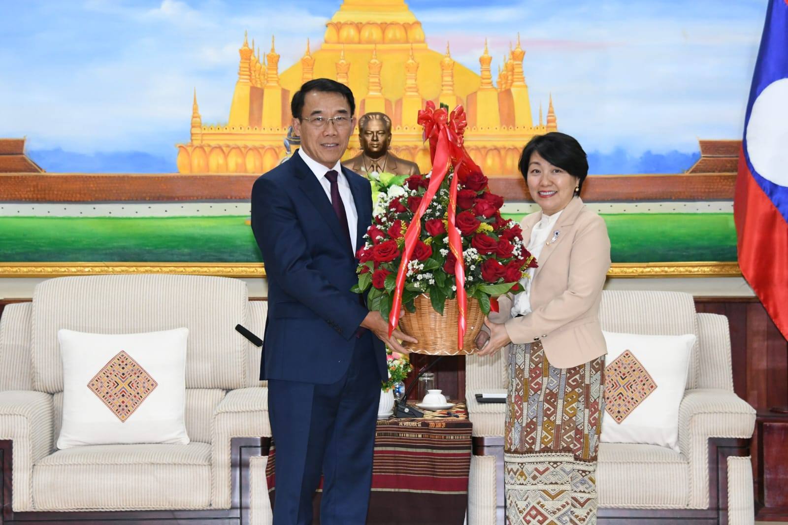 ຫົວໜ້າຄະນະພົວພັນຕ່າງປະເທດສູນກາງພັກ ຕ້ອນຮັບການເຂົ້າມາອວຍພອນຂອງ ເອກອັກຄະລັດຖະທູດວິສາມັນຜູ້ມີອໍານາດເຕັມ ແຫ່ງ ສສ ຫວຽດນາມ, ສປ ຈີນ ແລະ ສປປ ເກົາຫຼີ ປະຈໍາ ສປປ ລາວ ໃນໂອກາດວັນສ້າງຕັ້ງພັກ ປປ ລາວ ຄົບຮອບ 71 ປີ