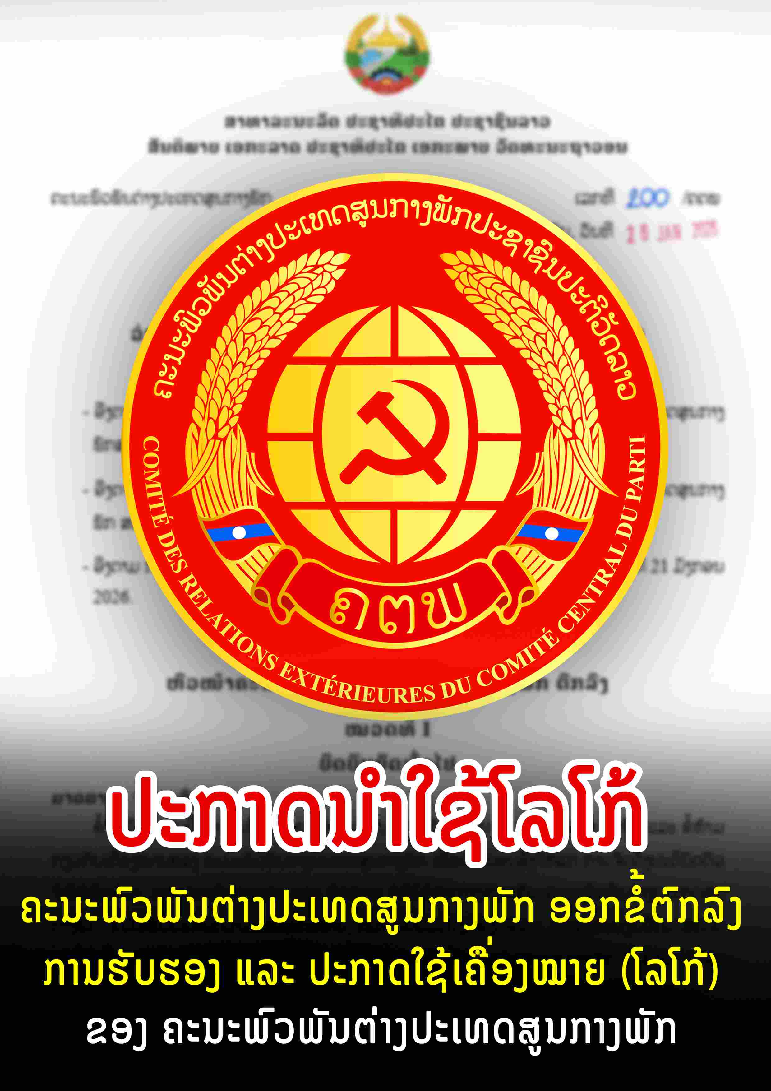 ຄະນະພົວພັນຕ່າງປະເທດສູນກາງພັກ ຮັບຮອງ ແລະ ປະກາດນຳໃຊ້ ເຄື່່ອງໝາຍ (ໂລໂກ້) ຂອງຄະນະພົວພັນຕ່າງປະເທດສູນກາງພັກ